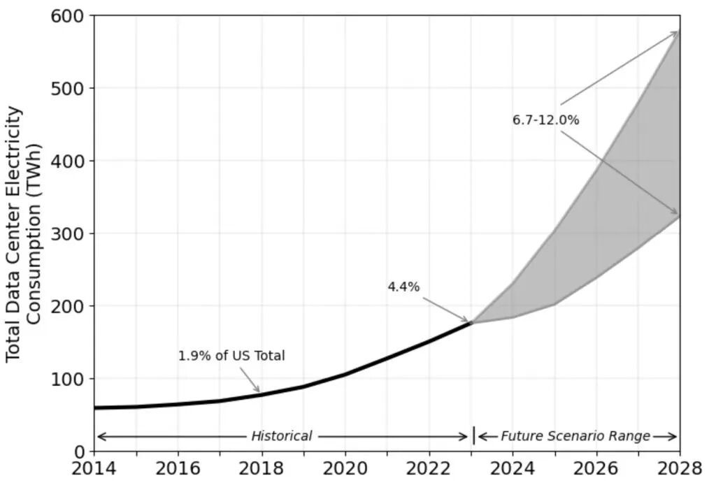不知道各位差友有没有印象,咱们之前讲过美国缺电,数据中心服务器有显卡却用不上的故事。比起显卡,能源可能是未来又一个掣肘 AI 的关键因素。