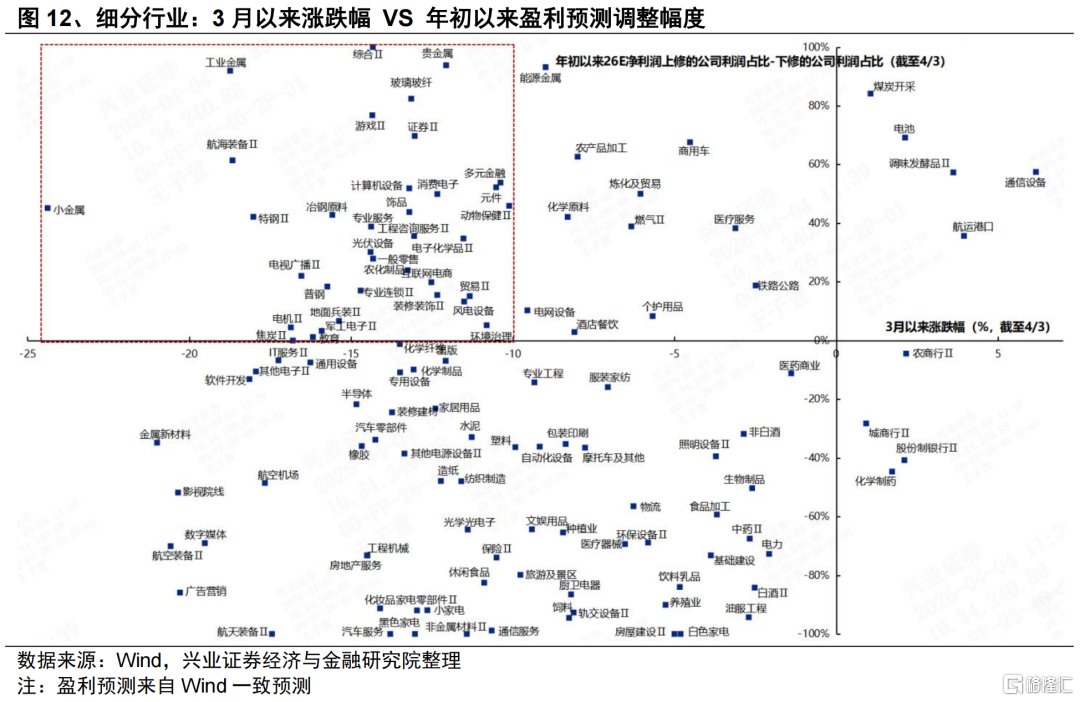 细分行业方面,通过年初以来2026年盈利预测上修情况,筛选一季报有望表现较好的方向,主要集中在: