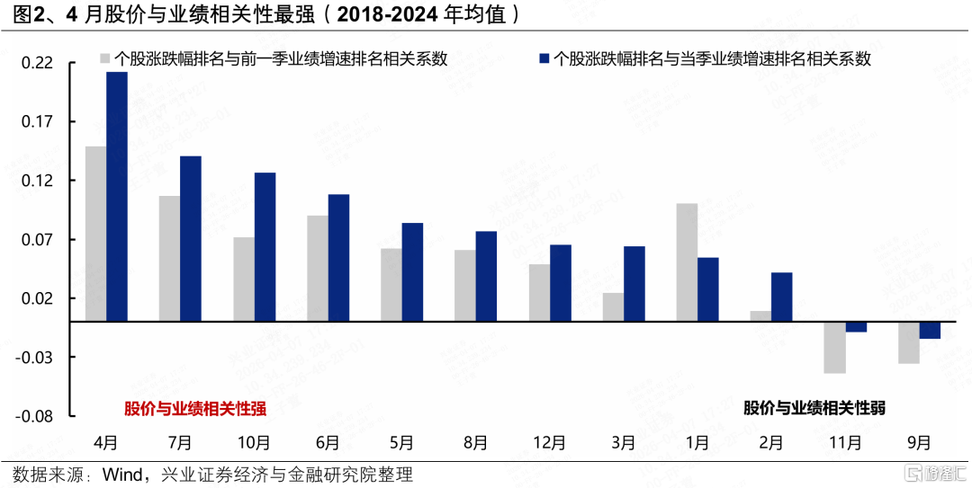 业绩是4月定价的核心因子。随着年报和一季报陆续披露,业绩成为4月的核心定价因子。4月是全年股价与业绩相关性最高的月份。