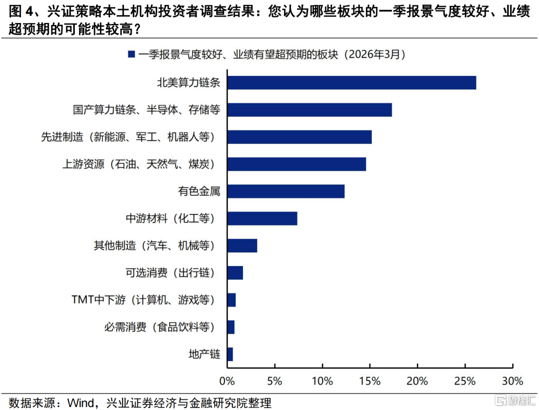 三、兴证策略本土机构投资者调查:算力链、先进制造与上游资源一季报景气共识较强
