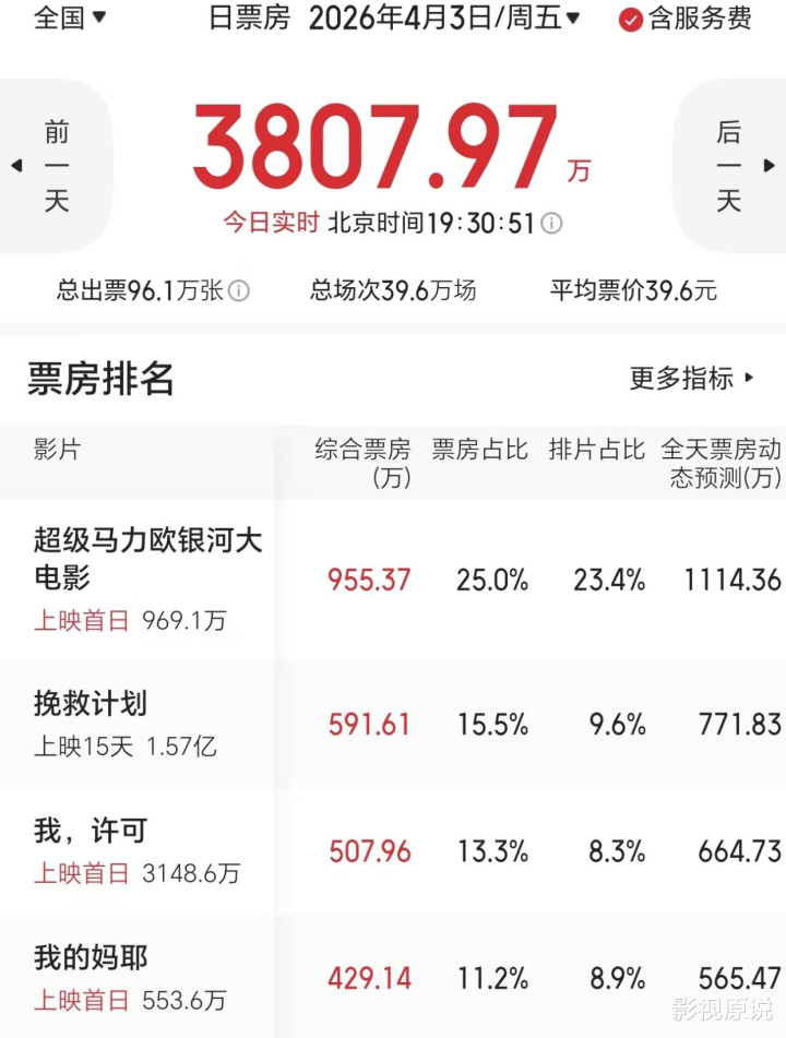 在《超级马力欧银河大电影》之后,则是《我,许可》和《我的妈耶》,它们现在各自的首日票房都还不到600万美元,整体显得很惨淡。